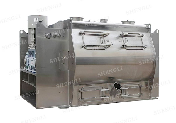 无重力混合机根据不同的物料性质可对双轴桨叶进行适应性调整。 如:增设耐磨搅拌叶片、增设四氟搅拌叶片、锯齿形搅拌叶等无重力混合机可增设高速破碎轴于筒体内部,配合搅拌物料流起打散作用。